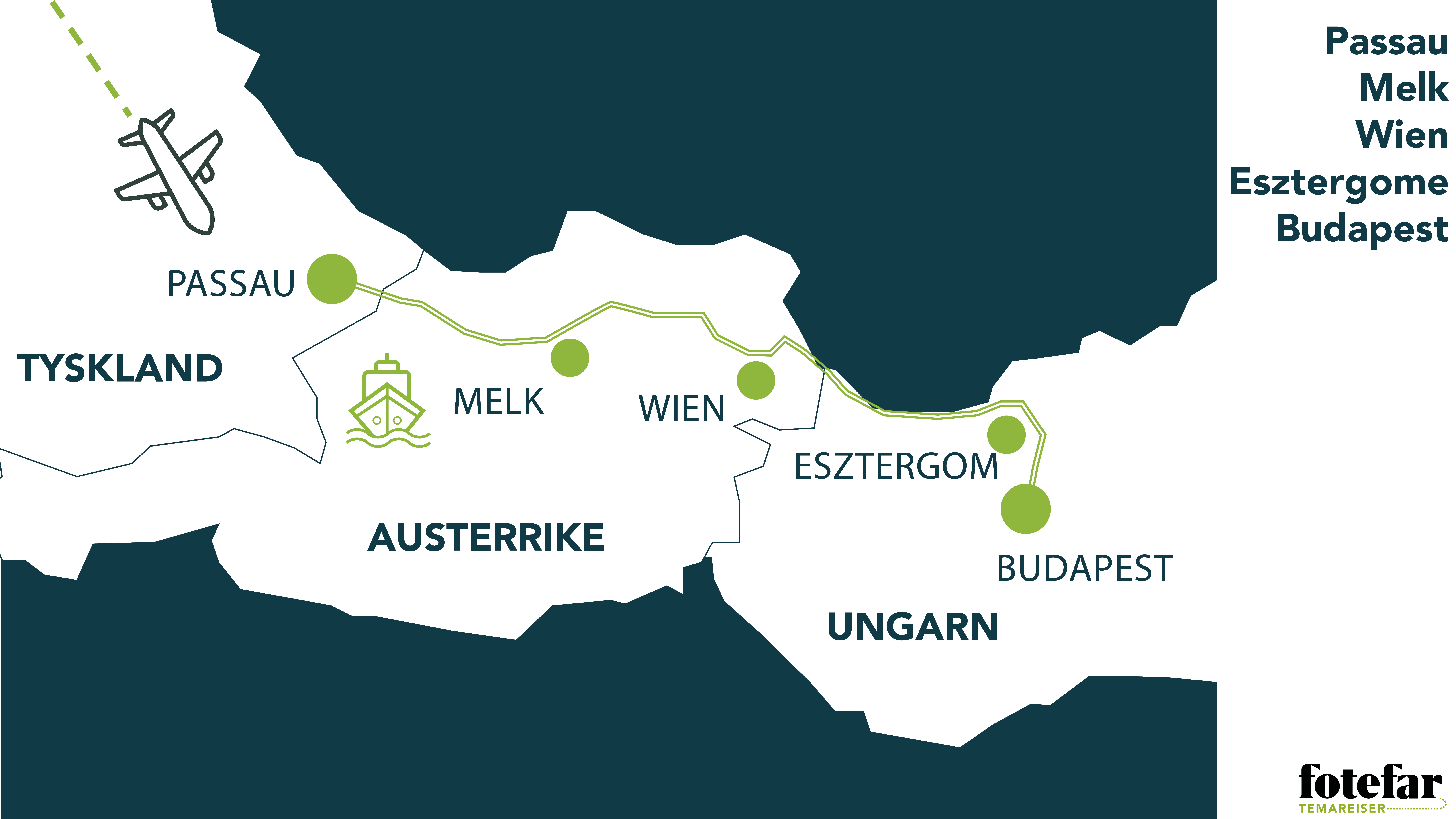Passau - Melk - Wien - Esztergom - Budapest.