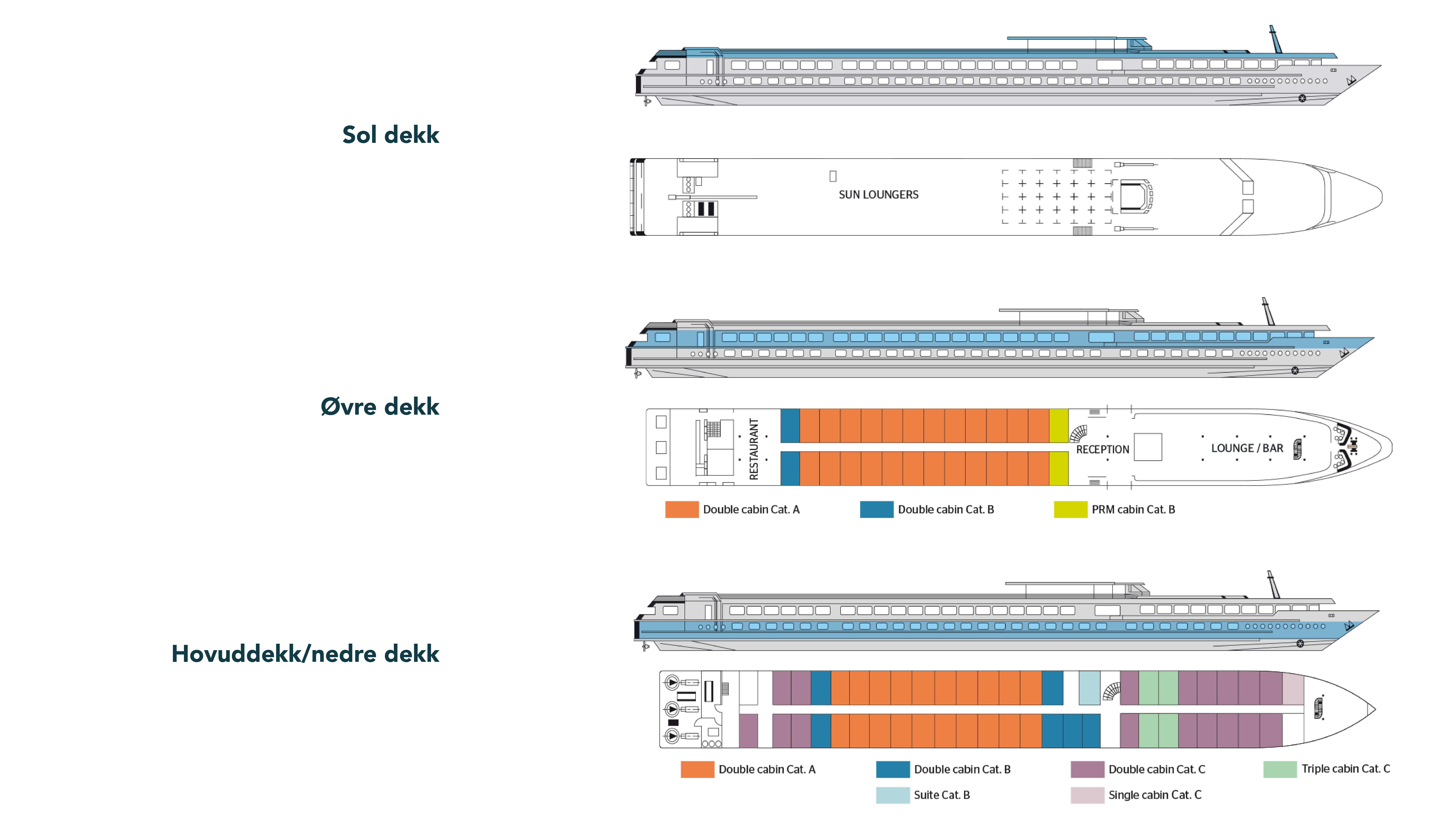 Ein fin elvebåt med 78 lugarar som alle er utvendige. Lugarane har også bad med dusj, hårtørkar, TV, safe og aircondition. Alle måltida om bord med drikke er inkluderte.
