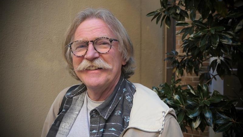 Artisten Olav Stedje er med på heile turen og held minikonsertar.